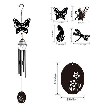 홈 장식 인기있는 조정 차임 야외 매달려 철 공예 바람 차임 블랙 실루엣 바람 차임